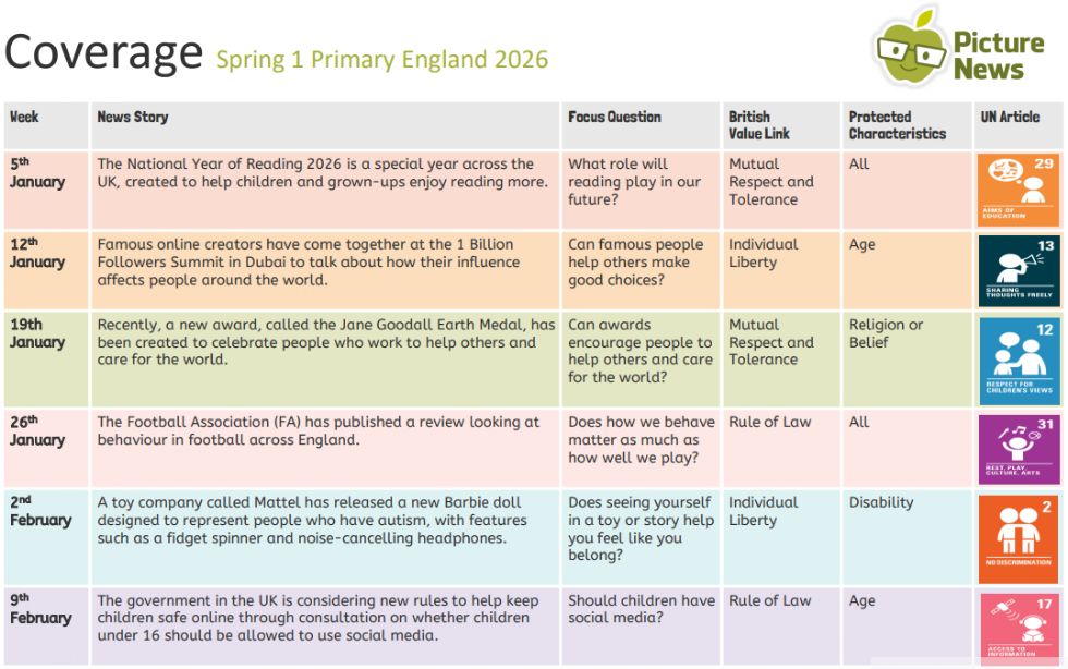 At Wordsworth we use Picture News to teach our pupils about current affairs and to spark their interest in the world around them. See below for what was covered during the Summer and Autumn terms.